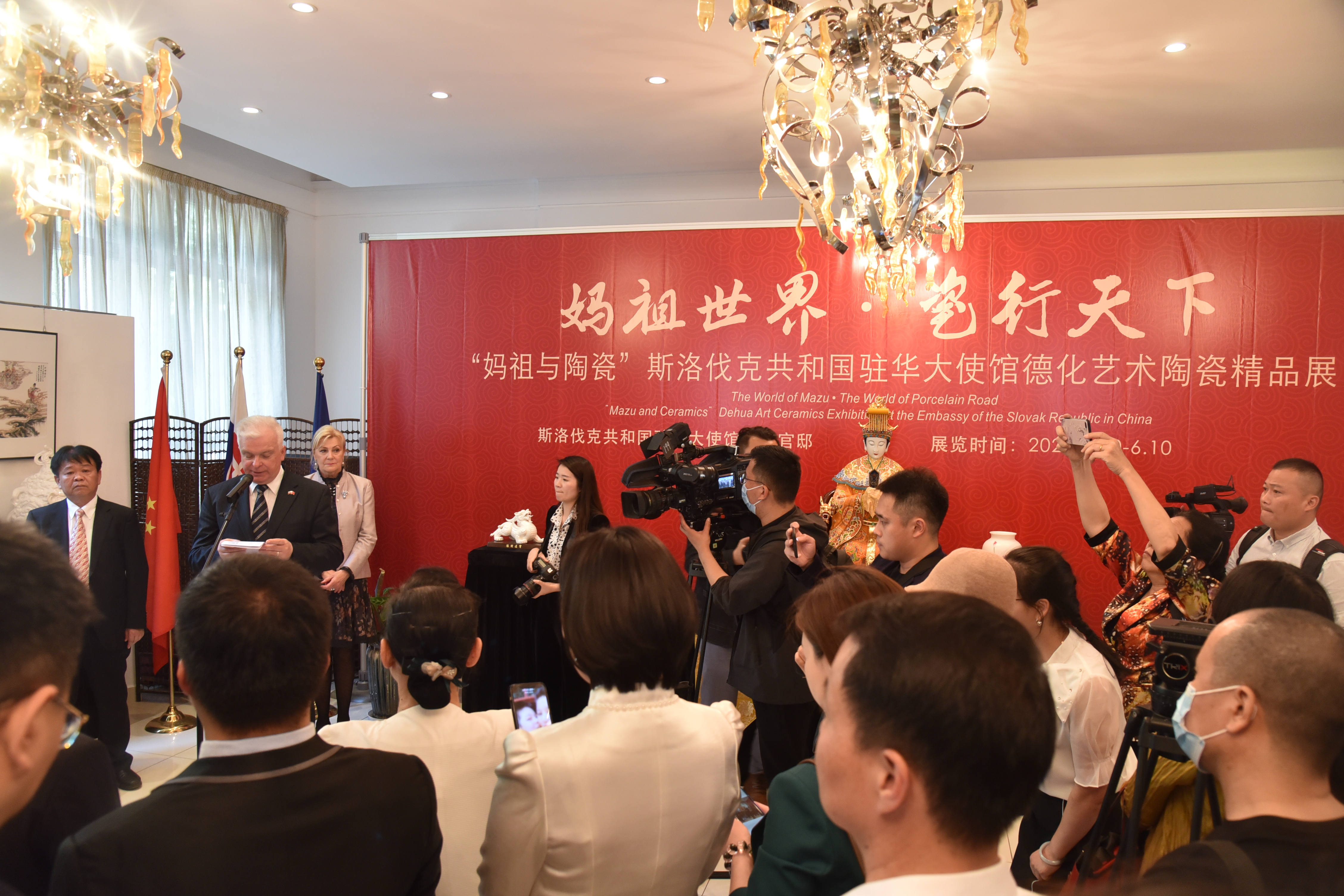 據(jù)悉,本次展覽由斯洛伐克共和國駐華大使館支持,中華媽祖文化交流協(xié)會、德化縣陶瓷發(fā)展委員會聯(lián)合主辦,德化縣陶瓷辦承辦。展覽將持續(xù)至6月10日,共展出50余件德化白瓷作品,作品的題材都相關(guān)表現(xiàn)了人類非物質(zhì)文化遺產(chǎn)——媽祖信俗,表現(xiàn)形式為國家級非物質(zhì)文化遺產(chǎn)——德化瓷燒制技藝。