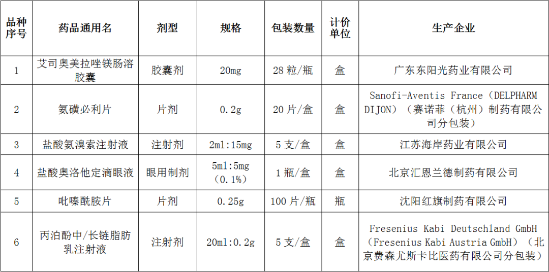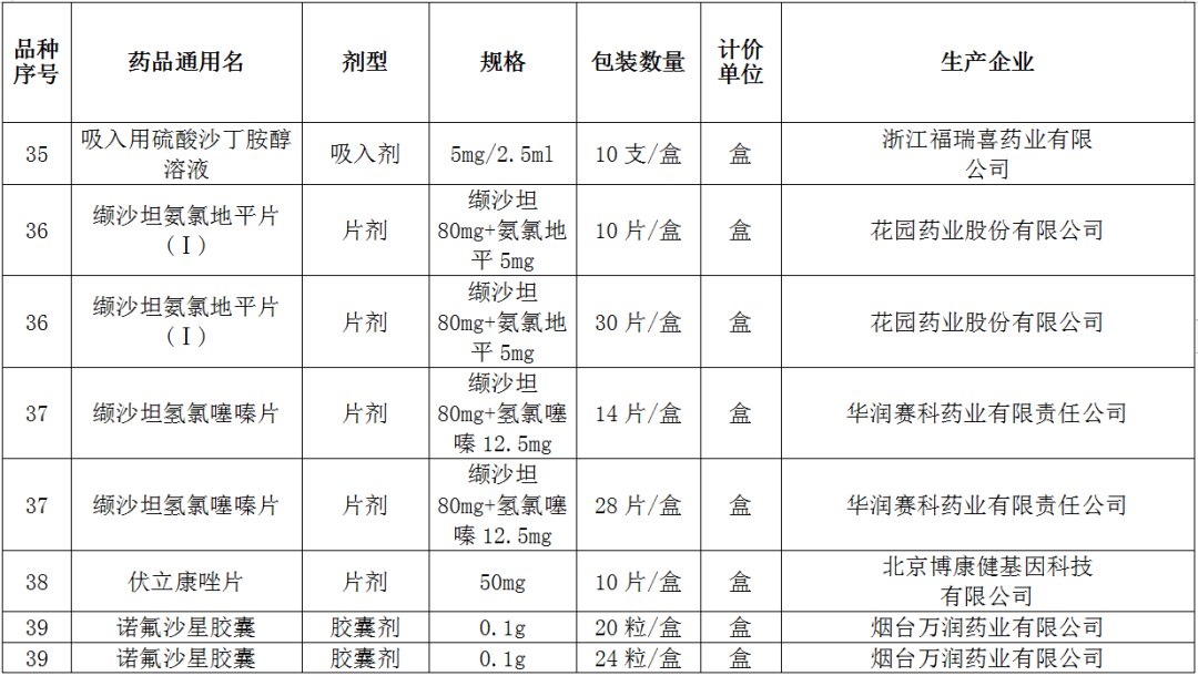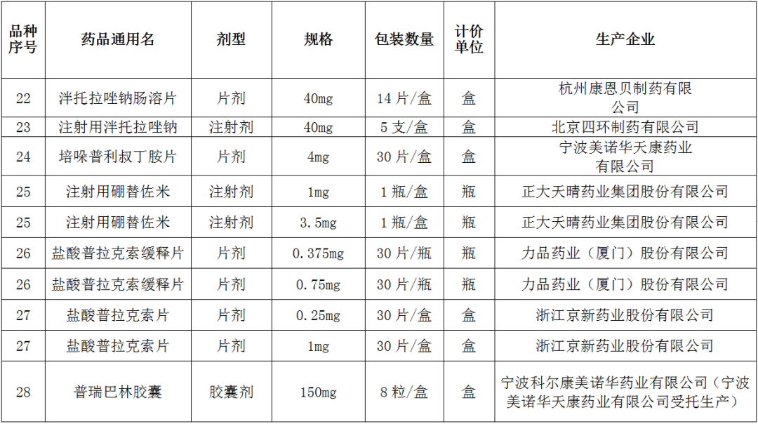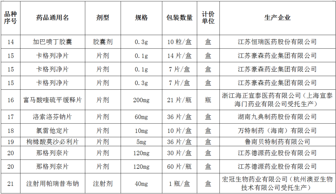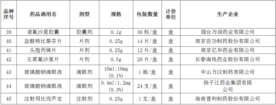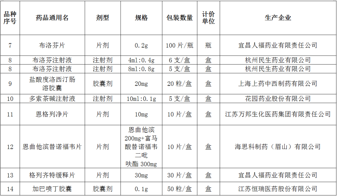 第四批國家組織藥品集中采購(福建省)中選品種清單↓