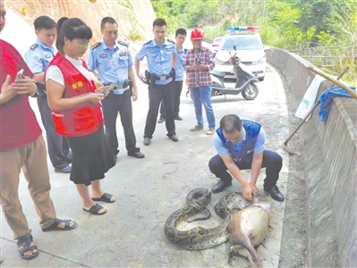 四米長(zhǎng)蟒蛇吞羊嚇壞路人,警民攜手齊力擒獲