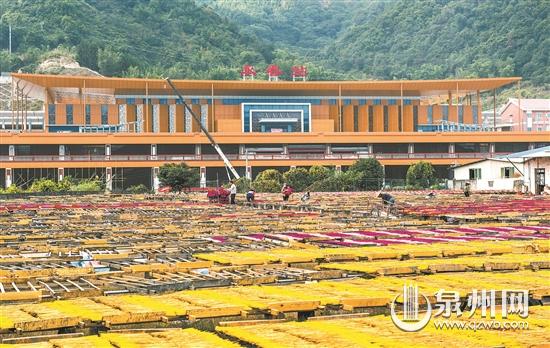 臺(tái)海網(wǎng)12月27日訊 據(jù)泉州晚報(bào)報(bào)道 日前,記者在位于永春達(dá)埔鎮(zhèn)的興泉鐵路永春站客運(yùn)站房項(xiàng)目候車(chē)大廳前方遠(yuǎn)眺,陽(yáng)光下,前方制香廠曬香場(chǎng)上一片金黃,與橘黃色為主色調(diào)的站房相映成趣。據(jù)介紹,設(shè)計(jì)規(guī)模為7000平方米的永春站站房項(xiàng)目,于2020年2月25日開(kāi)工建設(shè),目前已基本完成,正在進(jìn)行裝修工程,很快進(jìn)入掃尾階段,為明年興泉鐵路全線通車(chē)做好準(zhǔn)備。(陳小陽(yáng) 顏雅婷 康慶平 攝)