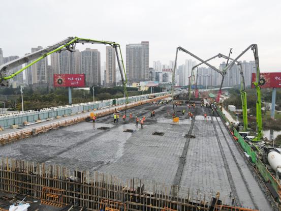 臺海網(wǎng)1月6日訊 據(jù)閩南網(wǎng)報道 日前,泉州大橋擴改工程現(xiàn)場施工場面頗為壯觀,多臺大型水泥泵車輪番作業(yè),施工人員配合標(biāo)準化作業(yè)如火如荼進行。