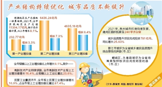臺(tái)海網(wǎng)2月8日訊 據(jù)泉州晚報(bào)報(bào)道 產(chǎn)業(yè)與城市如“車之雙輪、鳥(niǎo)之雙翼”,產(chǎn)業(yè)強(qiáng)為城市固根基,城市興為產(chǎn)業(yè)添后勁。過(guò)去一年,泉州面對(duì)復(fù)雜嚴(yán)峻外部環(huán)境和本土區(qū)域疫情散發(fā)等多重考驗(yàn),經(jīng)濟(jì)穩(wěn)中提質(zhì),產(chǎn)業(yè)結(jié)構(gòu)持續(xù)優(yōu)化,新動(dòng)能加快培育,城市功能品質(zhì)不斷提升,城鄉(xiāng)面貌加速更新,實(shí)現(xiàn)“十四五”良好開(kāi)局。