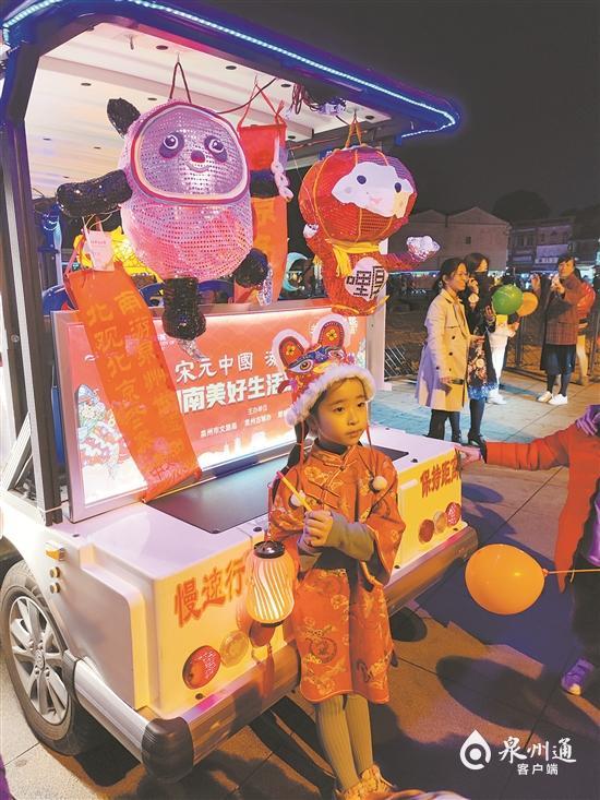 來自晉江的蔡先生正帶著兒子小蔡沿著中山路騎行,一路為兒子介紹泉州的老城區(qū)。看到掛著花燈的“小白”,小蔡感到十分新奇。“平時(shí)我們生活在晉江,兒子沒見過‘小白’,更別說掛著花燈的‘小白’了。今天帶著他過來泉州老城區(qū)感受一下元宵的氣氛,沒想到碰上這個(gè)活動,多了幾分驚喜。”