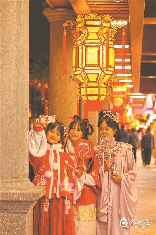 “今天特地來泉州看花燈。”人群中,身穿漢服的拾一和路北十分引人注目。兩人都來自廈門,傍晚趕到泉州后,還沒來得及將行李放到酒店,便匆匆趕到鐘樓“打卡”。拾一告訴記者,這是她們第三次來泉州,在她看來,泉州是一個(gè)非常有文化底蘊(yùn)的城市,她一直很喜歡泉州獨(dú)特的人文特色。(記者郭芳蓉 魏曉芳)