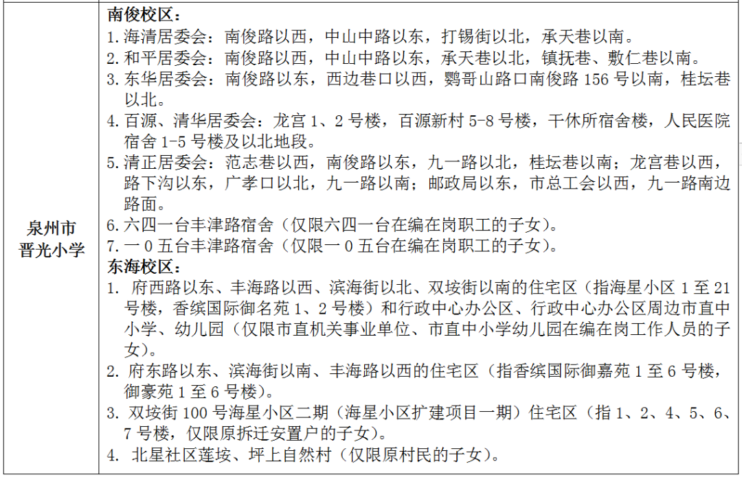 戶籍在市直小學招生服務區(qū)域但不符合戶籍、住房產(chǎn)權、實際居住“三一致”條件適齡兒童,原則上由戶籍所在區(qū)教育局統(tǒng)籌安排公辦學校接收入學。其中,鯉城轄區(qū)市直小學招生服務區(qū)域內(nèi)的集體戶適齡兒童,由鯉城區(qū)教育局統(tǒng)籌安排到鯉城區(qū)新村小學或其它片區(qū)學校。