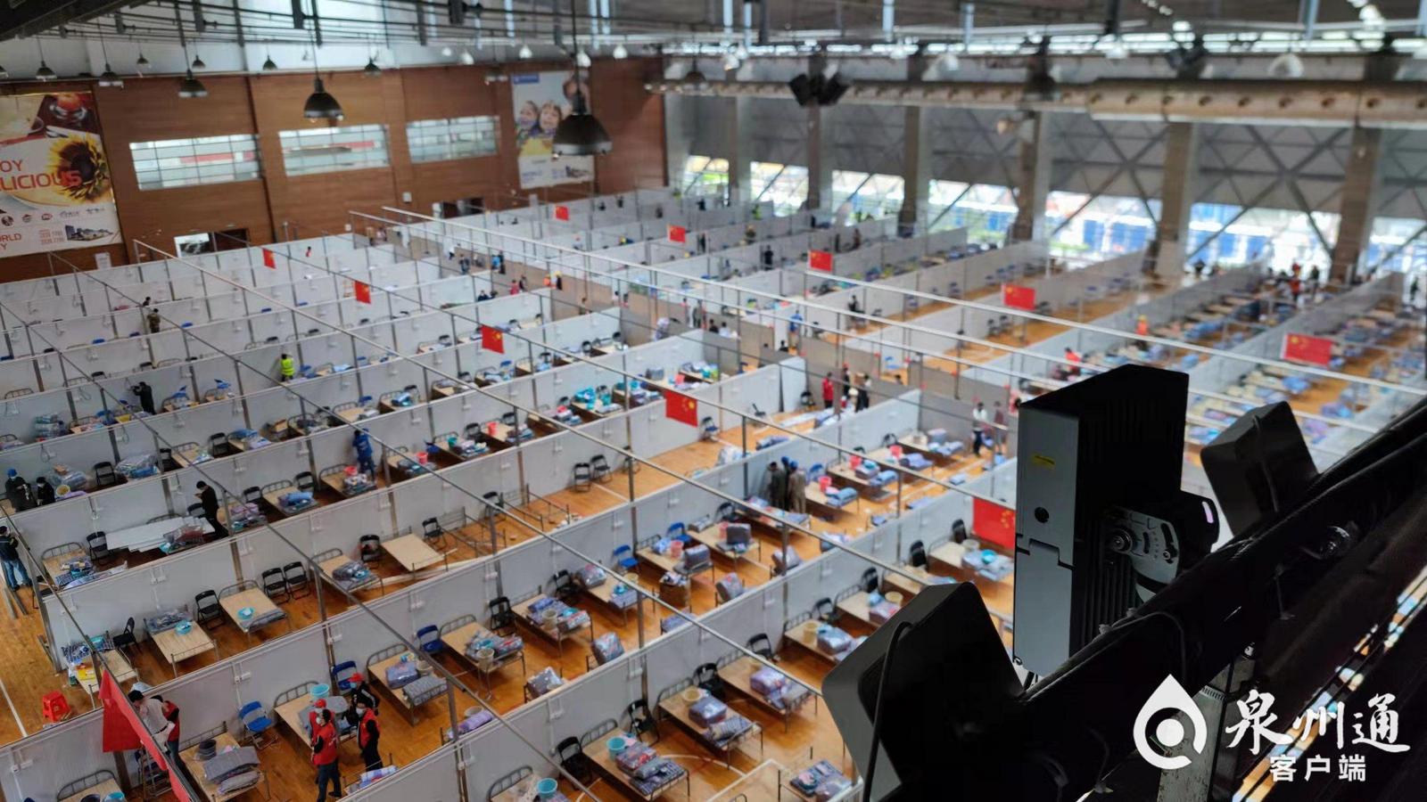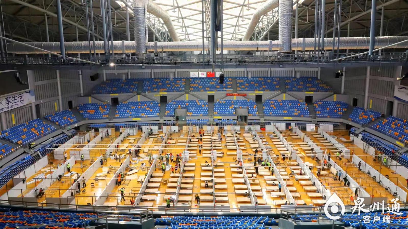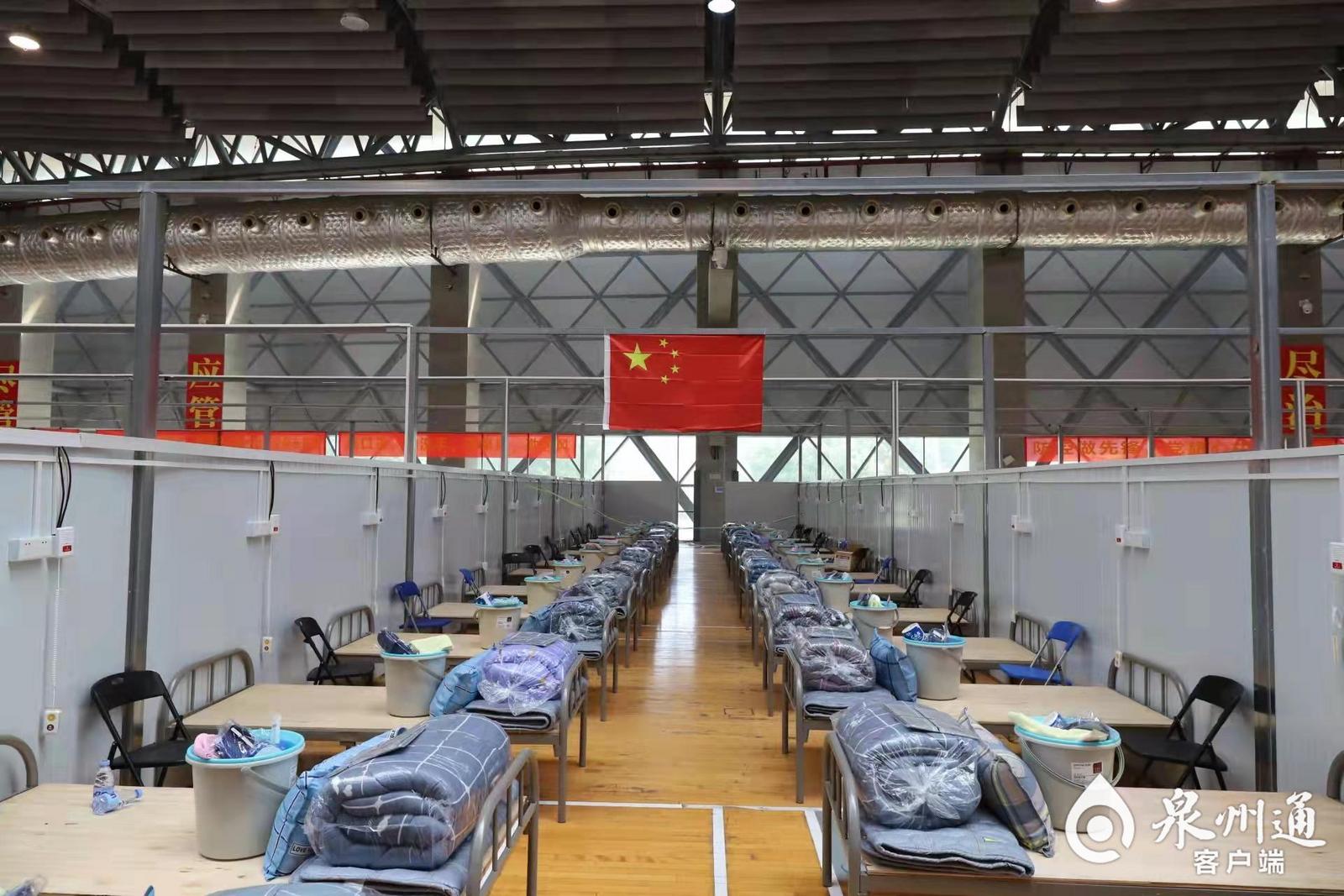 泉州市方艙醫(yī)院位于泉州市海峽體育中心羽毛球館和籃球館,分A、B區(qū),總計容納1000個床位,用于接收輕癥患者和無癥狀患者。項目按照國家制定的方艙醫(yī)院建設(shè)標(biāo)準(zhǔn)建設(shè),功能設(shè)施配套齊全,包含病床、衛(wèi)生間、淋浴房、洗衣房、污物轉(zhuǎn)運區(qū)、辦公區(qū)。從18日下午接到命令到進場只花了2個小時,有20多家單位協(xié)同作戰(zhàn),已經(jīng)連續(xù)奮戰(zhàn)兩個晝夜,投入人力數(shù)千人,目前已基本完工,正在加緊進行水電調(diào)試、移動消毒機安裝等,今天就可投用。記者看到,每個倉位床位整齊排列,床被、垃圾桶等生活設(shè)施已經(jīng)到位,每個倉位一面面紅旗和黨旗鮮艷奪目,醫(yī)療人員同步在溝通醫(yī)療設(shè)備進場事情宜,移動公司在調(diào)試網(wǎng)絡(luò)、工人在安裝消毒機……大家都在跟時間賽跑,付出100%努力,給病患建設(shè)一個放安心的“家”。
