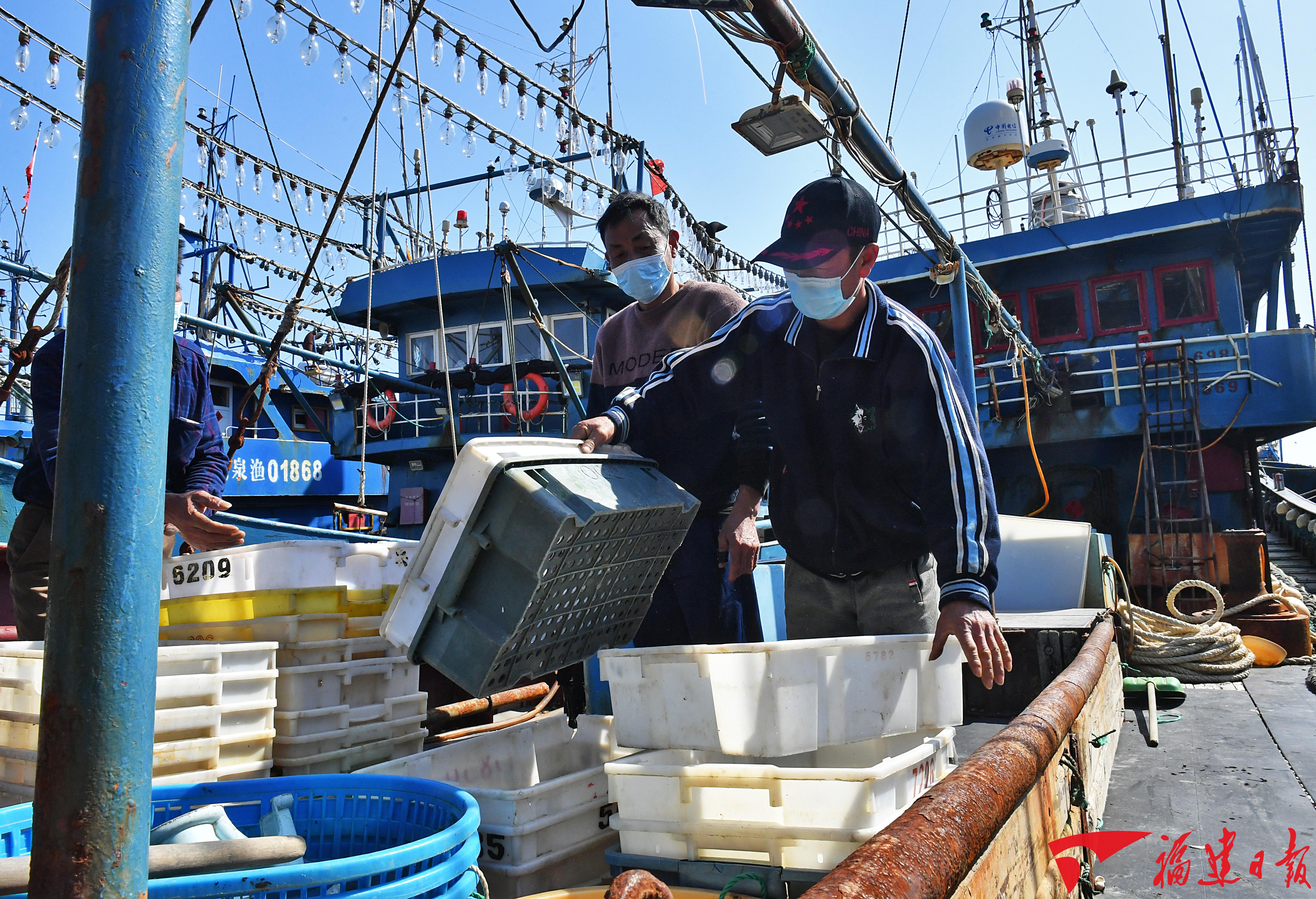 “因?yàn)橐咔?,我們已?jīng)休息了將近一個(gè)月,今天終于可以出海捕魚(yú)了,希望疫情能早日退卻。”當(dāng)天下午出港前,閩泉漁01766的船主劉益成將出海行囊搬上漁船、整理好漁具,并把口罩、消毒液、體溫計(jì)等防疫物品擺放整齊,為復(fù)工出海捕魚(yú)做最后準(zhǔn)備。