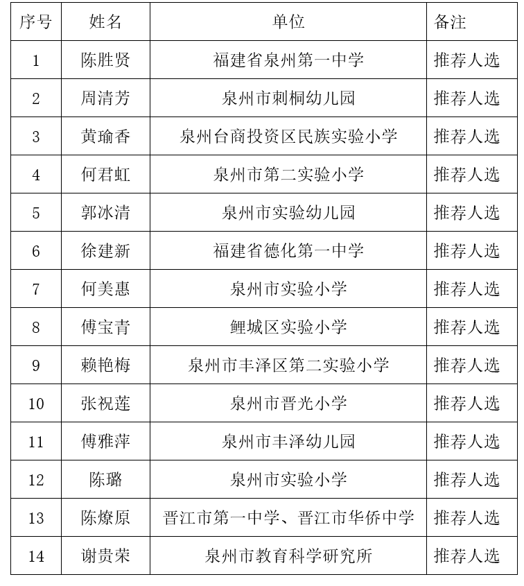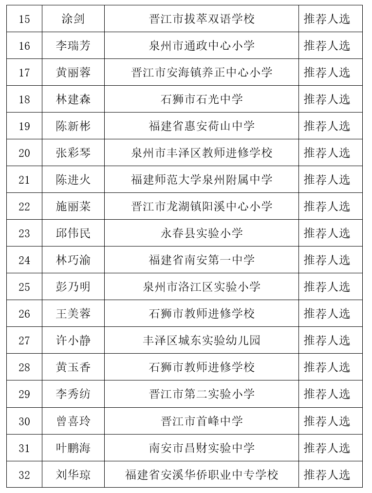 附件:泉州市2022年福建省特級教師推薦人選名單