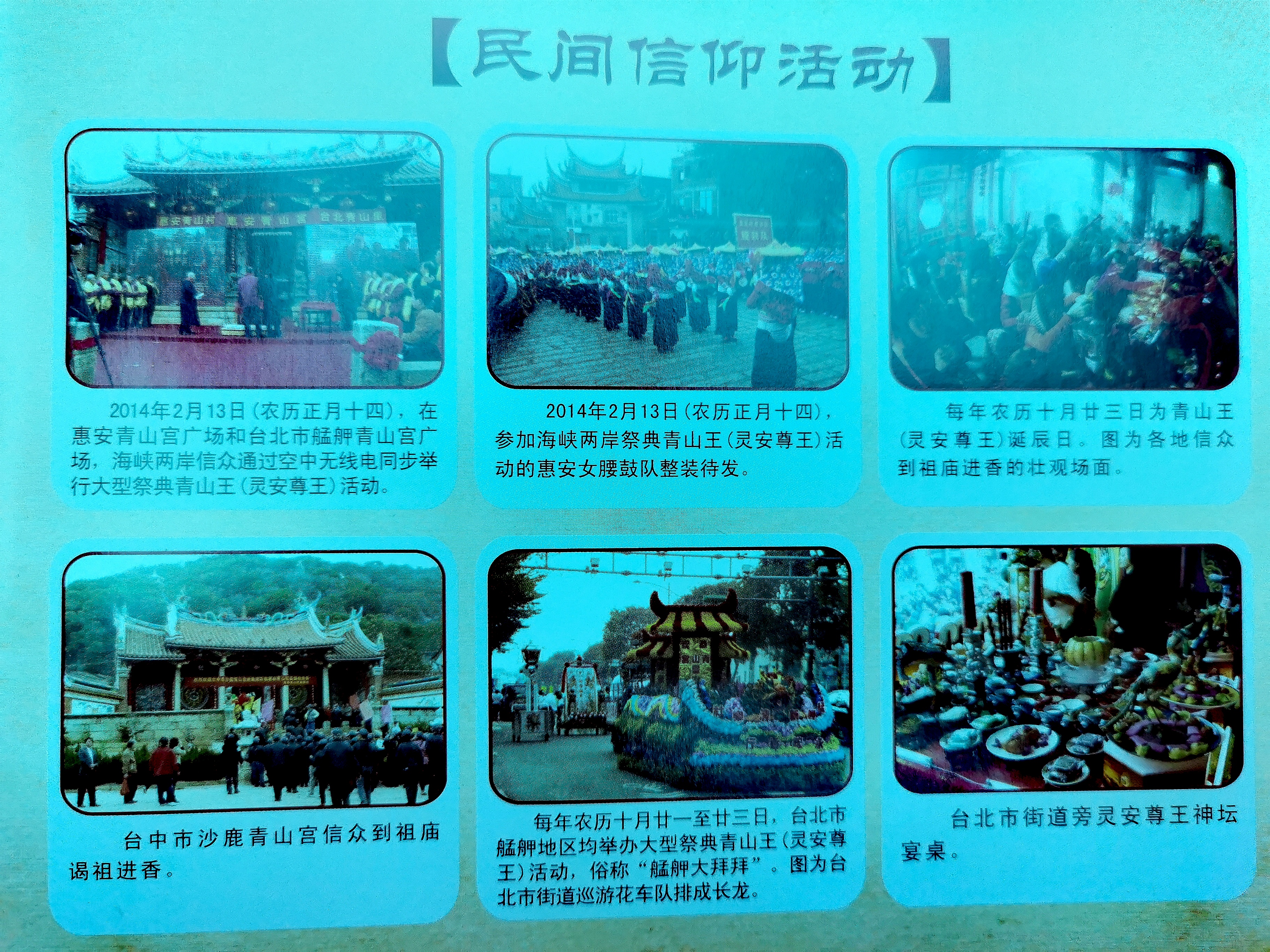 青山王信俗文化以其特有的影響力發(fā)揮了溝通兩岸的橋梁和紐帶作用。從惠安到臺(tái)灣青山王信俗的發(fā)展歷程,是眾多發(fā)源于大陸原鄉(xiāng)的民間信仰向臺(tái)灣傳播與落地生根的一個(gè)縮影,體現(xiàn)青山王信俗在臺(tái)灣的延續(xù)性和特殊性,讓人們看見青山王信俗在閩、臺(tái)兩地的異同面貌。同時(shí),呈現(xiàn)民間信仰在海峽兩岸的移植與變遷。
