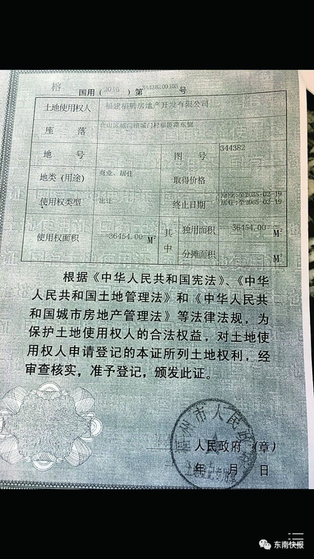 濱海.橙里營銷中心張貼的國有土地使用證年限