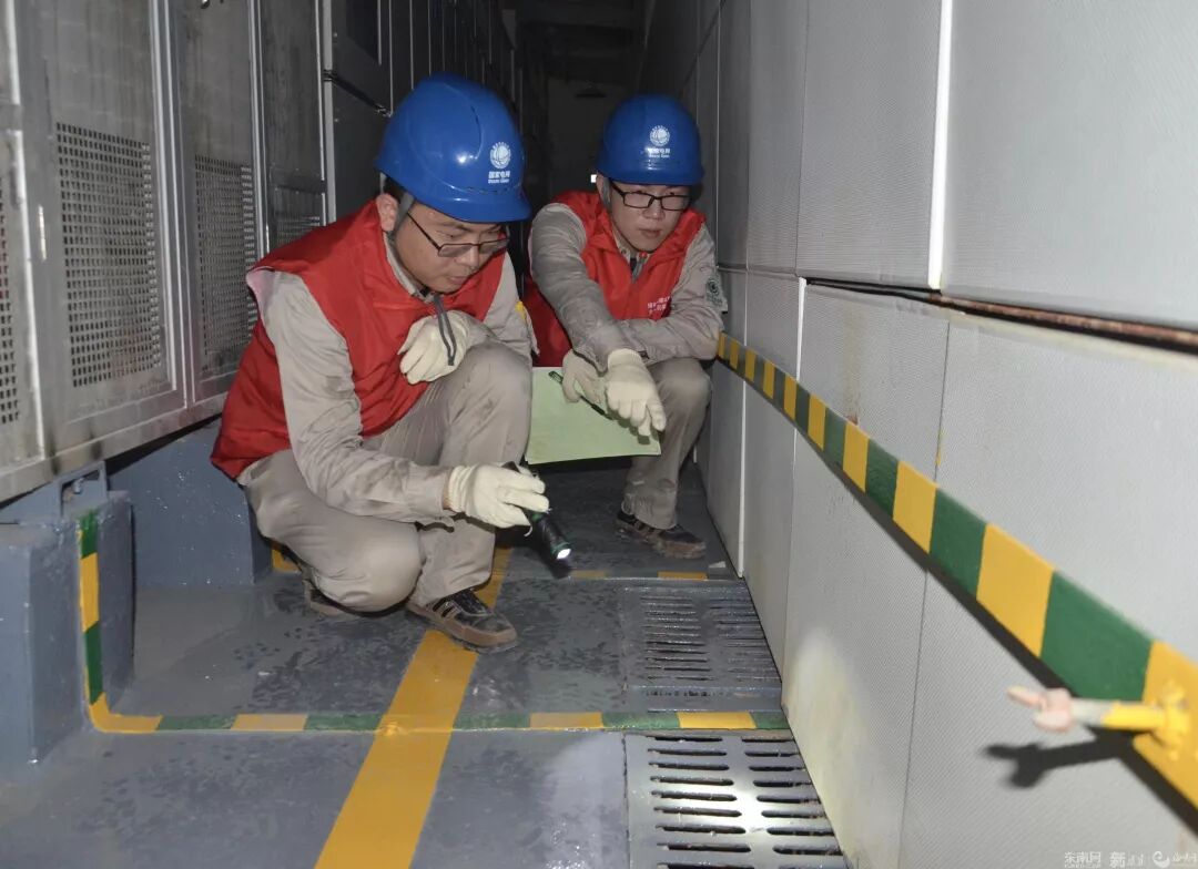 10日,福建福州供電公司員工林冰和施林涵在福州市倉山區(qū)金建小區(qū)對配電站房的排澇系統(tǒng)電源進(jìn)行檢查,并向小區(qū)物業(yè)發(fā)放臺風(fēng)期間安全告知書,全力防抗臺風(fēng)“瑪莉亞”。