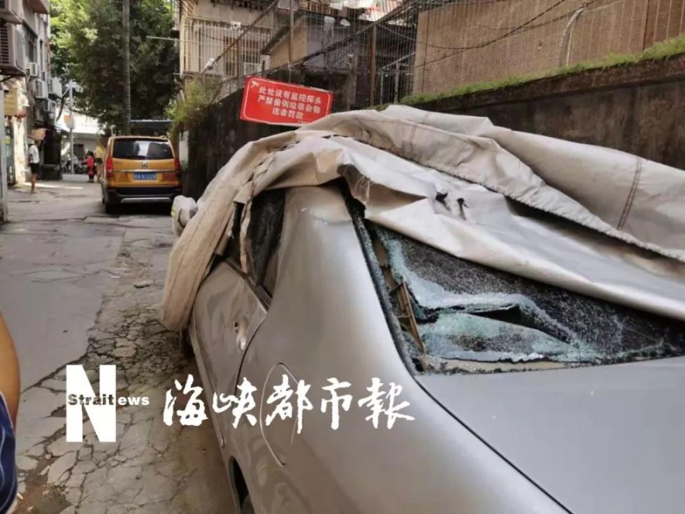 接到讀者爆料后,記者第一時間趕到現(xiàn)場,事發(fā)地點位于賢南公寓往賢南路的出口處。記者看到,現(xiàn)場有一輛小車用遮陽防雨外套車棚蓋住,該棚后側(cè)有輕微破損。