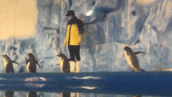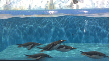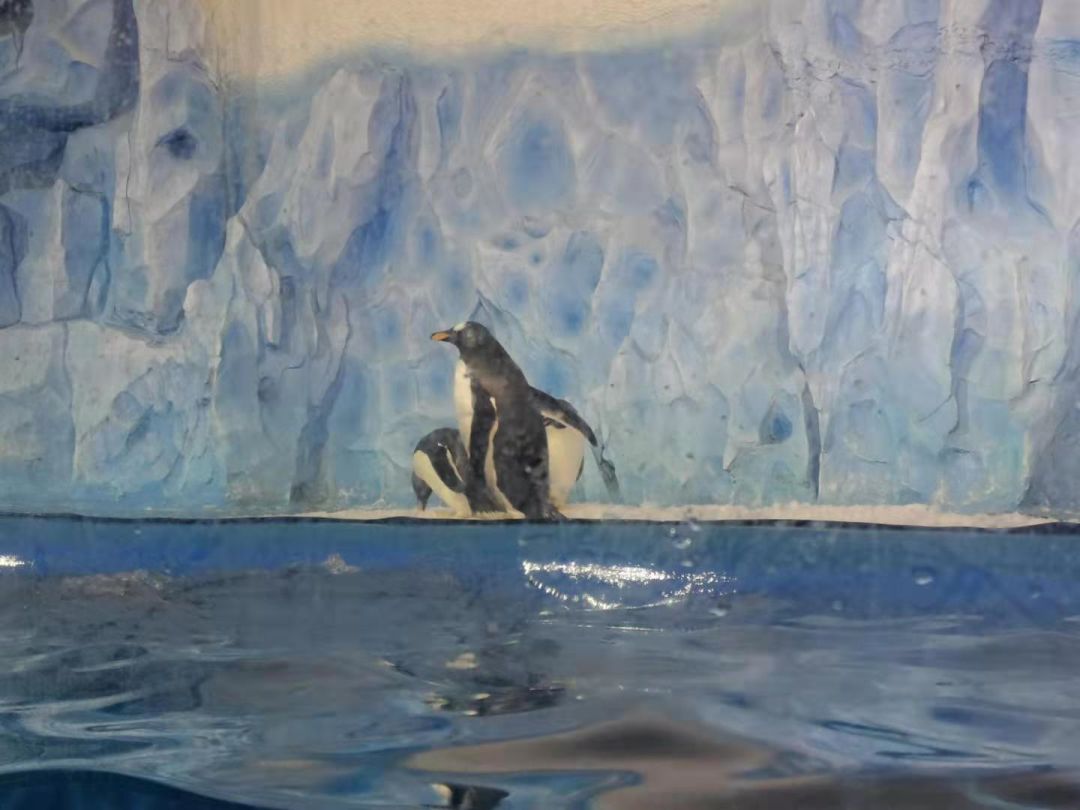 來自南極的精靈鳥巴布亞企鵝又叫白眉企鵝,采訪團看見這些精靈在長達24米的池中歡快地游著,看來對新家十分滿意。
