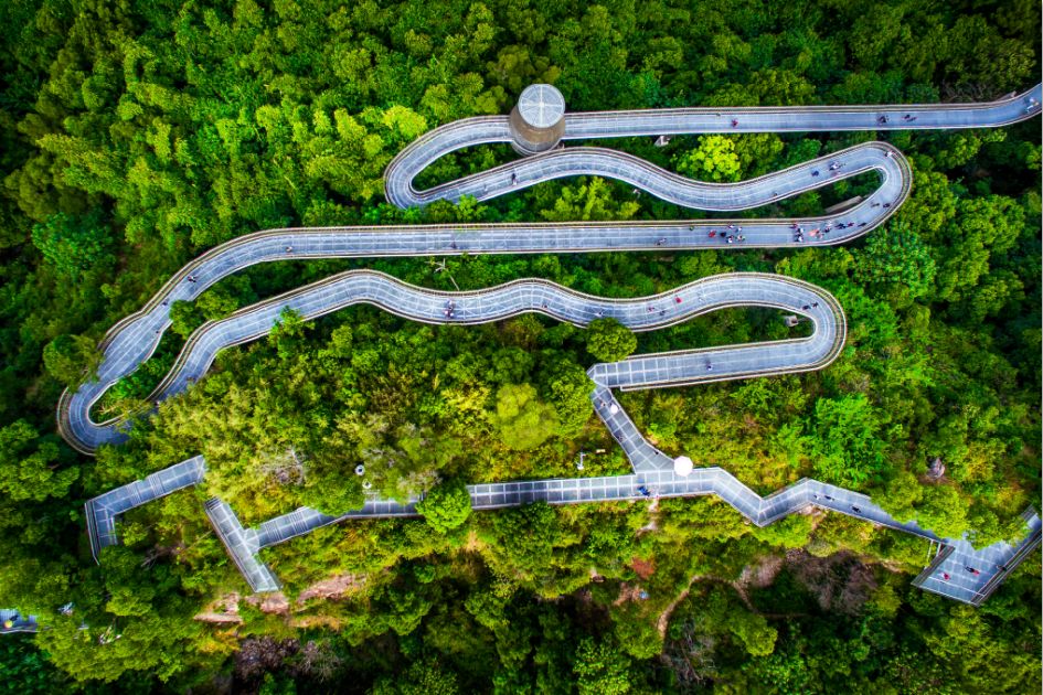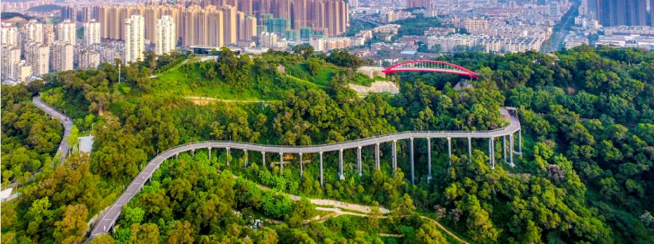 環(huán)山而建、山中看城的城市森林步道也開放了,走上這螺旋而上的步道,便恍若穿行在森林中,沿途林木環(huán)抱,身在其中,就仿佛是在一幅畫中流轉(zhuǎn)。
