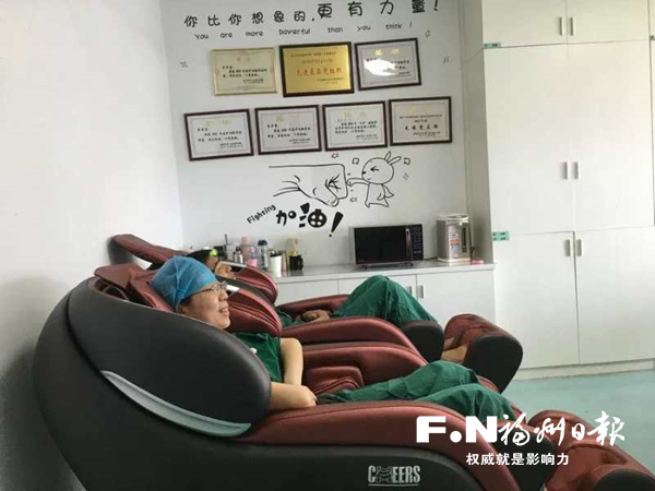 醫(yī)護(hù)人員在溫馨的醫(yī)生休息室里放松。(福州市總工會(huì)供圖)