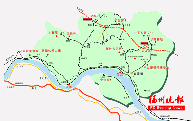 白沙鎮(zhèn)旅游景點導(dǎo)覽圖。