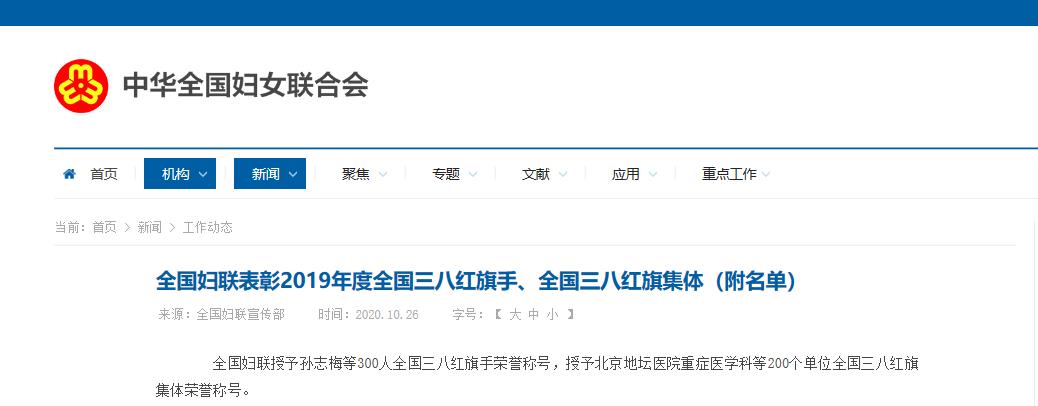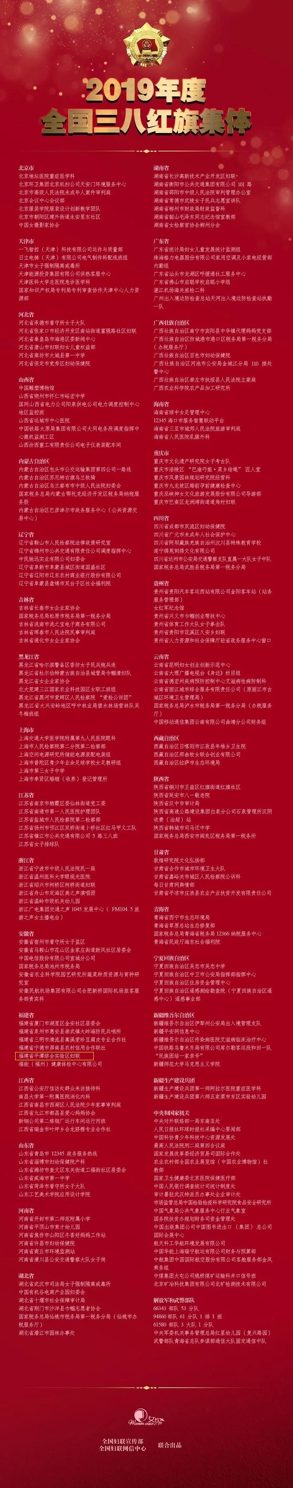 臺(tái)海網(wǎng)10月27日訊 據(jù)福建日?qǐng)?bào)·新福建APP綜合報(bào)道 10月26日,全國(guó)婦聯(lián)官網(wǎng)發(fā)布通知,決定授予孫志梅等300人全國(guó)三八紅旗手榮譽(yù)稱號(hào),授予北京地壇醫(yī)院重癥醫(yī)學(xué)科等200個(gè)單位全國(guó)三八紅旗集體榮譽(yù)稱號(hào),其中,平潭綜合實(shí)驗(yàn)區(qū)婦聯(lián)榮獲2019年度全國(guó)三八紅旗集體榮譽(yù)稱號(hào)。具體公告如下: