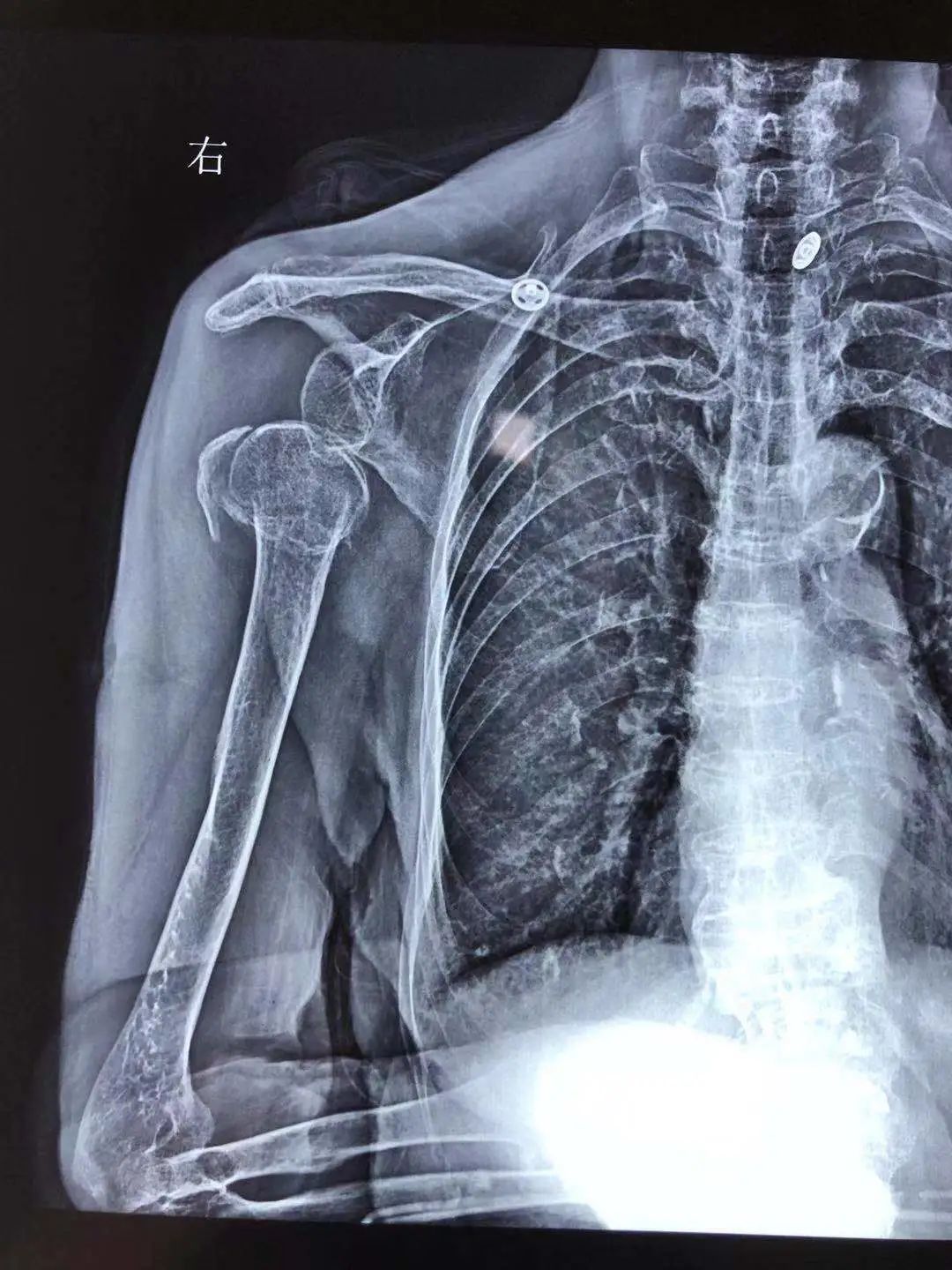 上個(gè)月初,黃奶奶穿拖鞋在家中行走時(shí),不慎滑倒,當(dāng)時(shí)右肩著地,隨即出現(xiàn)右肩關(guān)節(jié)疼痛、關(guān)節(jié)活動(dòng)受限,經(jīng)閩侯當(dāng)?shù)蒯t(yī)院檢查、拍片,得知黃奶奶右肩關(guān)節(jié)脫臼。當(dāng)?shù)蒯t(yī)生考慮到黃奶奶的年齡較大,采用了傳統(tǒng)手法復(fù)位治療。
