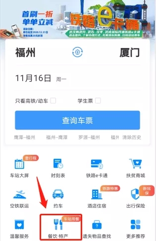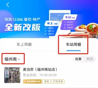 tep2:選擇“車站用餐”,并找到“福州南”站