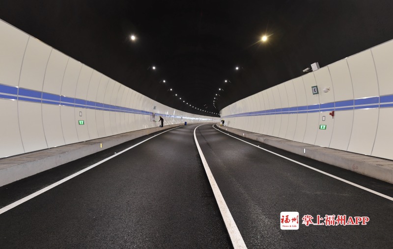 20日上午,在市建發(fā)集團(tuán)下屬福州市政建設(shè)開發(fā)公司該項(xiàng)目經(jīng)理蔣啟忠的帶領(lǐng)下,記者乘車從馬鞍隧道北洞口進(jìn)入,7米多寬單向2車道的主線隧道內(nèi),施工人員正做著最后的清潔工作,兩側(cè)藍(lán)白相間的主題色與黑色防火涂料涂刷的洞頂相互搭配,顏值頗高。在“發(fā)光圓球”(反光道釘)與洞內(nèi)燈光的陪伴下,短短2分鐘,車子便從南洞口“鉆”出,抵達(dá)軟件大道沿線。