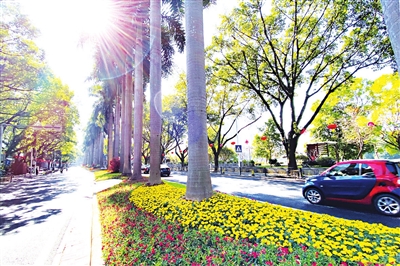 湖濱路沿線路面整潔,綠植花卉錯(cuò)落有致