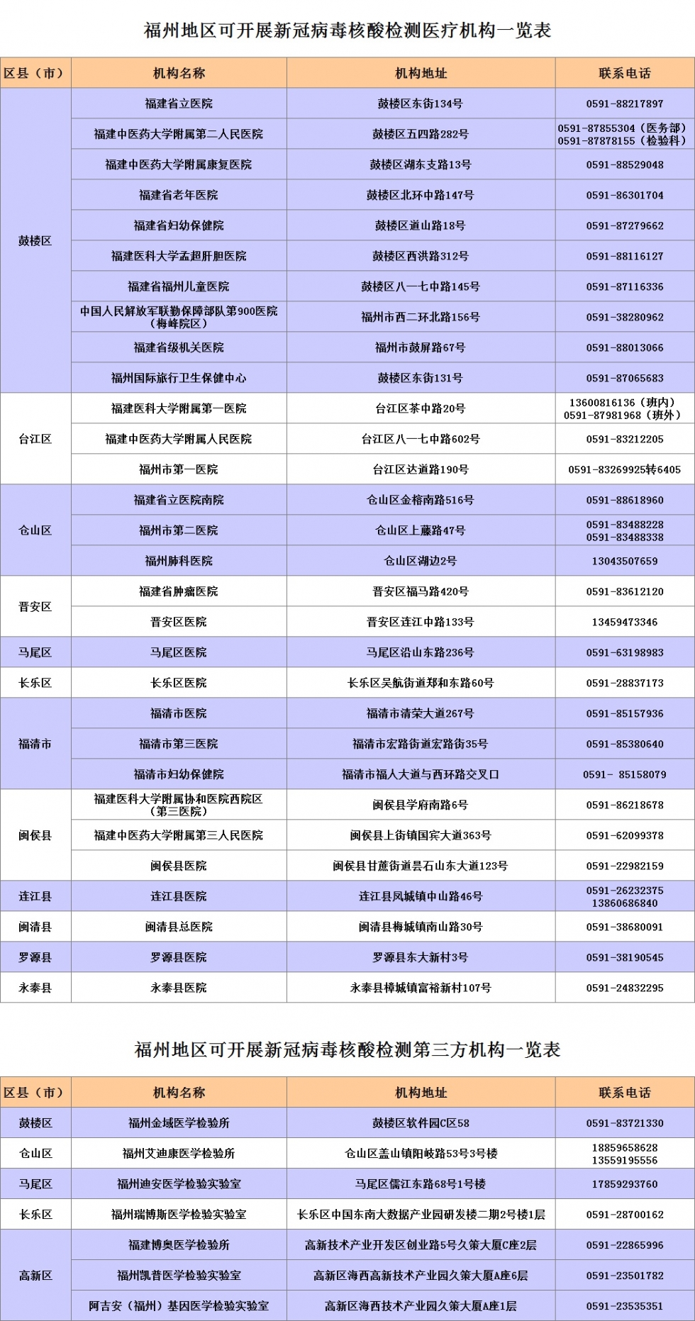 福州地區(qū)可開展新冠病毒核酸檢測醫(yī)療機構、第三方機構名單(2021年1月23日更新)