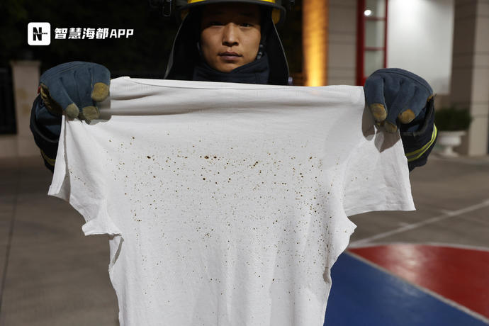 在消防員實(shí)驗(yàn)過程中,衣服被燒出多個(gè)小洞