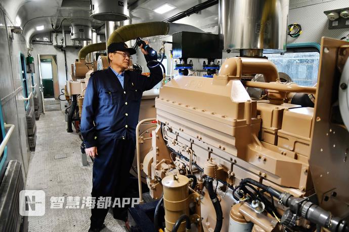 近日,記者在福州車(chē)輛段福州客整所跟隨著林躍雄一同來(lái)到了普速列車(chē)的空調(diào)發(fā)電車(chē)廂內(nèi)。只見(jiàn)車(chē)廂內(nèi)一共配置了3臺(tái)發(fā)電機(jī),每一臺(tái)設(shè)備在運(yùn)作時(shí),噪音高達(dá)168分貝。記者在現(xiàn)場(chǎng)呆了不到兩分鐘就已經(jīng)耳鳴,但為確保發(fā)電車(chē)運(yùn)轉(zhuǎn)正常,作為“列車(chē)供電醫(yī)生”的林躍雄必須每小時(shí)巡查一次,給發(fā)電機(jī)體檢,主要檢查油、水、電是否正常,冷卻系統(tǒng)工作狀況等。