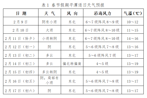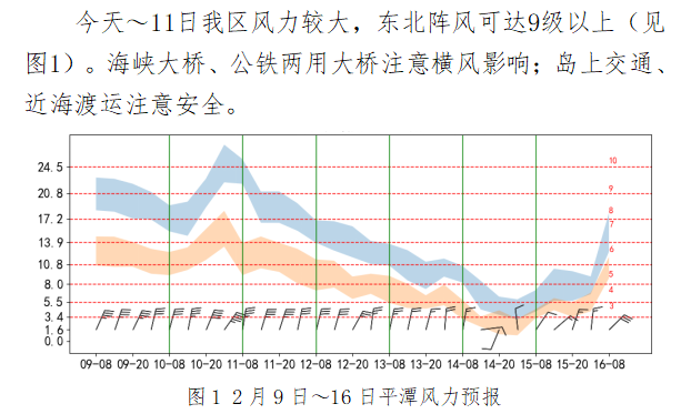 9日至11日,實(shí)驗(yàn)區(qū)陸續(xù)迎來大風(fēng)、降雨、降溫天氣,東北陣風(fēng)可達(dá)9級(jí)以上,前往平潭海峽大橋、平潭海峽公鐵大橋的車輛需注意橫風(fēng)影響,春運(yùn)交通、涉海工程、濱海旅游等方面作業(yè)人員應(yīng)注意防范。