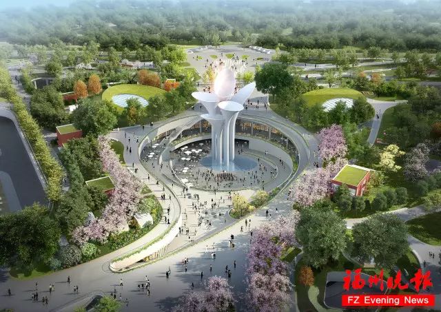 項目總建筑面積約11萬平方米,綠化面積約7.5萬平方米,在閩江北岸中央商務區(qū)的中心,以如意形態(tài)建設(shè)城市綠谷,周邊的綠化區(qū)則宛如一顆顆水滴,和濱江市民廣場上蓋公園及閩江融為一體,實現(xiàn)“匯于閩江,融于大海”的理念。