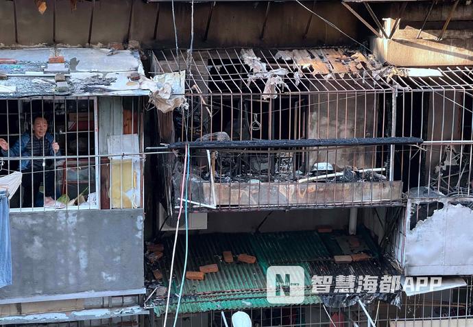 福壽巷一居民樓陽臺發(fā)生火災(zāi)后一片狼籍