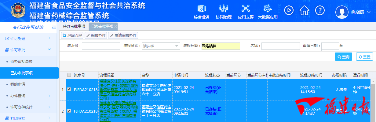 臺(tái)海網(wǎng)2月25日訊 據(jù)福建日?qǐng)?bào)·新福建APP報(bào)道 “在以前,我們公司有100多家門店,可要準(zhǔn)備百來套材料跑窗口,而現(xiàn)在,我上午在辦公室的電腦上提交申報(bào)材料,不一會(huì)兒就通過審核,在電腦上就可以查詢獲取結(jié)果了,這實(shí)在是太‘速度’,太方便了。”福建宜又佳醫(yī)藥連鎖有限公司經(jīng)辦人郭文輝連用兩個(gè)“太”表達(dá)對(duì)醫(yī)療器械網(wǎng)絡(luò)銷售信息備案實(shí)行全流程網(wǎng)辦的喜悅。