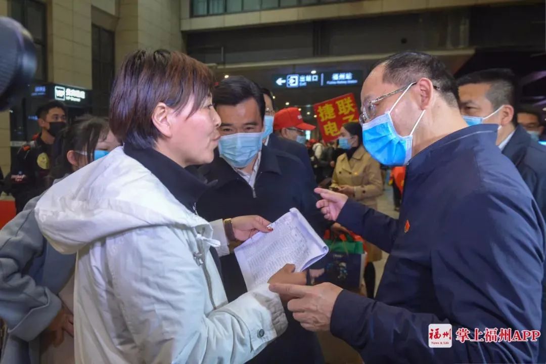 2021年2月21日,福州派出的首趟返崗專列迎來(lái)529名定西籍員工,王命瑞(右一)到福州站迎接務(wù)工人員回榕返崗。