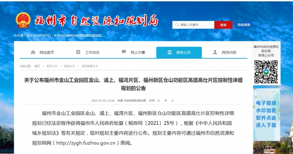 近日,福州市自然資源和規(guī)劃局發(fā)布《關(guān)于公布福州市金山工業(yè)園區(qū)金山、浦上、福灣片區(qū)、福州新區(qū)倉山功能區(qū)高盛高仕片區(qū) 控制性詳細規(guī)劃的公告》。