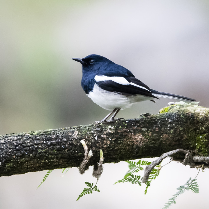 3月22日,在福州西湖公園的荷塘一角,一只鵲鴝在水邊的樹(shù)枝上停歇。