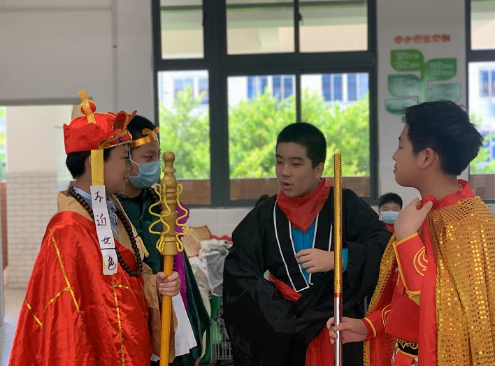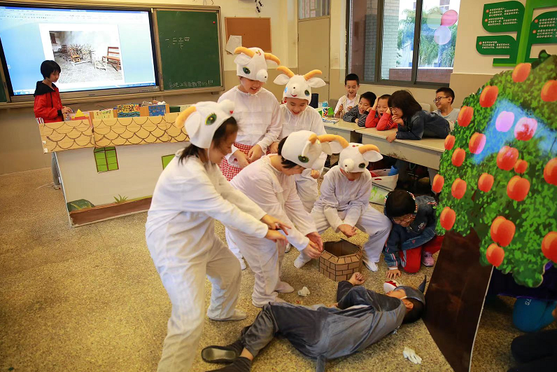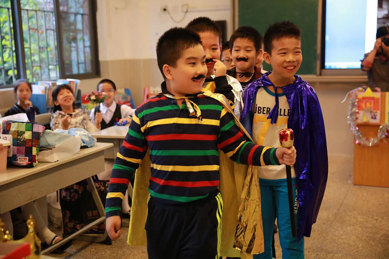 從四年級起,在鐘凌老師帶領(lǐng)下,孩子們堅持將閱讀的書本以表演的形式演繹出來。他們基于文本內(nèi)容,再現(xiàn)故事,改編故事,續(xù)編故事,吸引全校學(xué)生前來班級觀看。