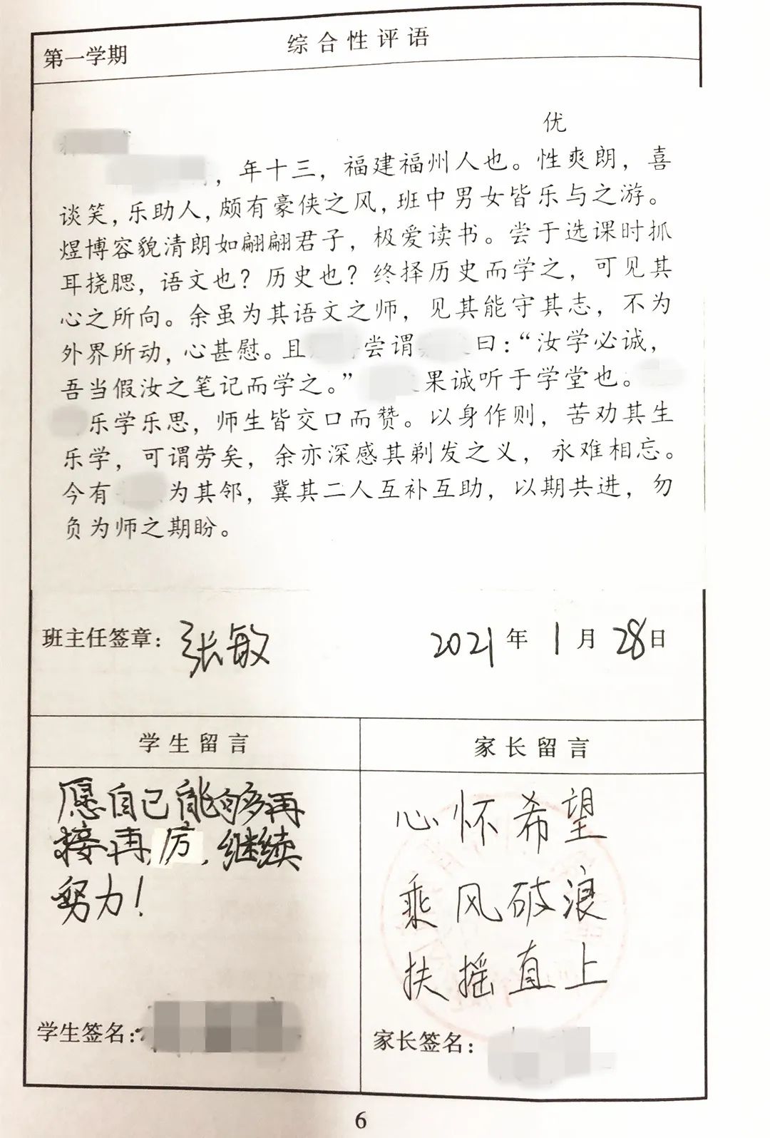 近日,福州第三中學(xué)晉安校區(qū)開展“優(yōu)秀評語”評選活動(dòng),對上一學(xué)期期末的教師評語進(jìn)行賦分,選出一二三等獎(jiǎng)。在參與評選的評語中,有一位老師的評語格外引人注目。