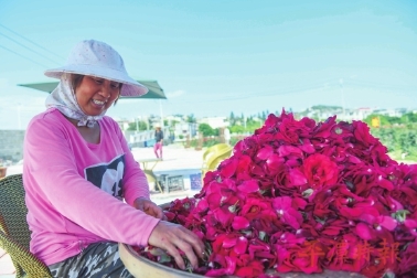 “現(xiàn)在我們村里的游客越來越多,看到我們村越來越有名氣,感覺我們的工作也很有意義。”在玫瑰園里工作的東崑村村民林美金笑著說。