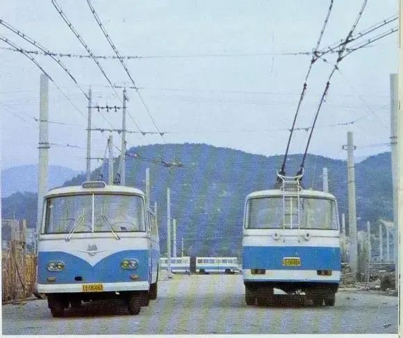 車頂“長(zhǎng)”著兩根“辮子”的無軌電車