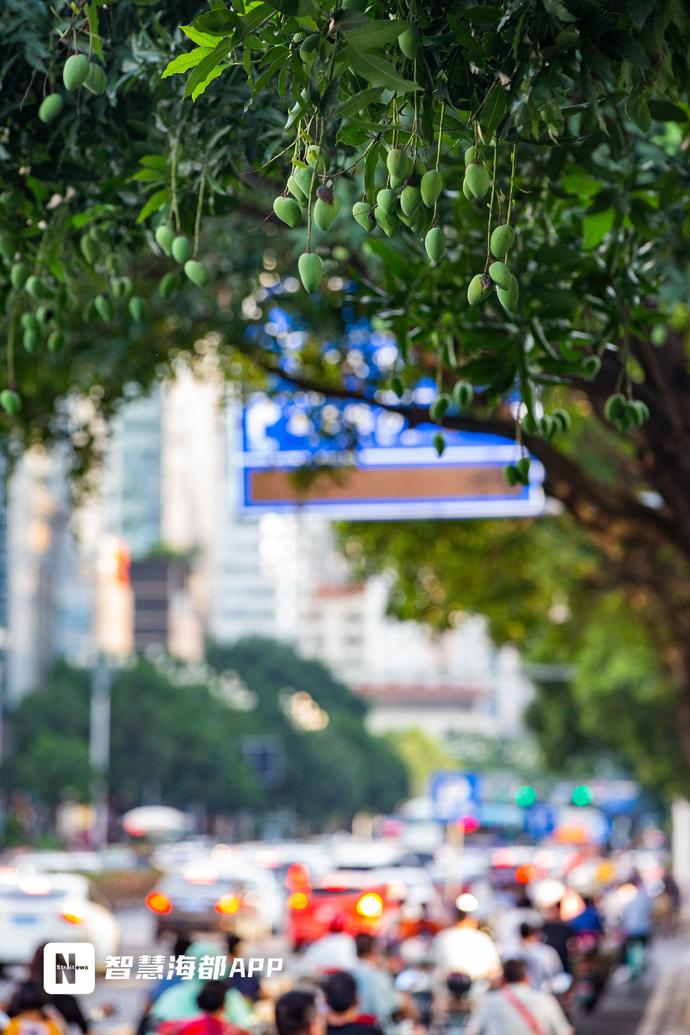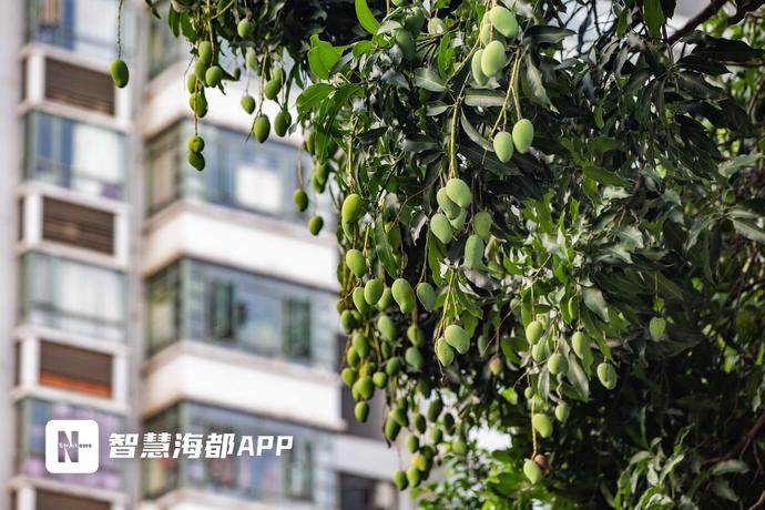 五四路上的芒果樹,枝頭掛滿了累累果實