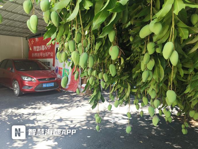 華林路一單位停車場,芒果樹的樹杈垂下,滿樹果實很是喜人