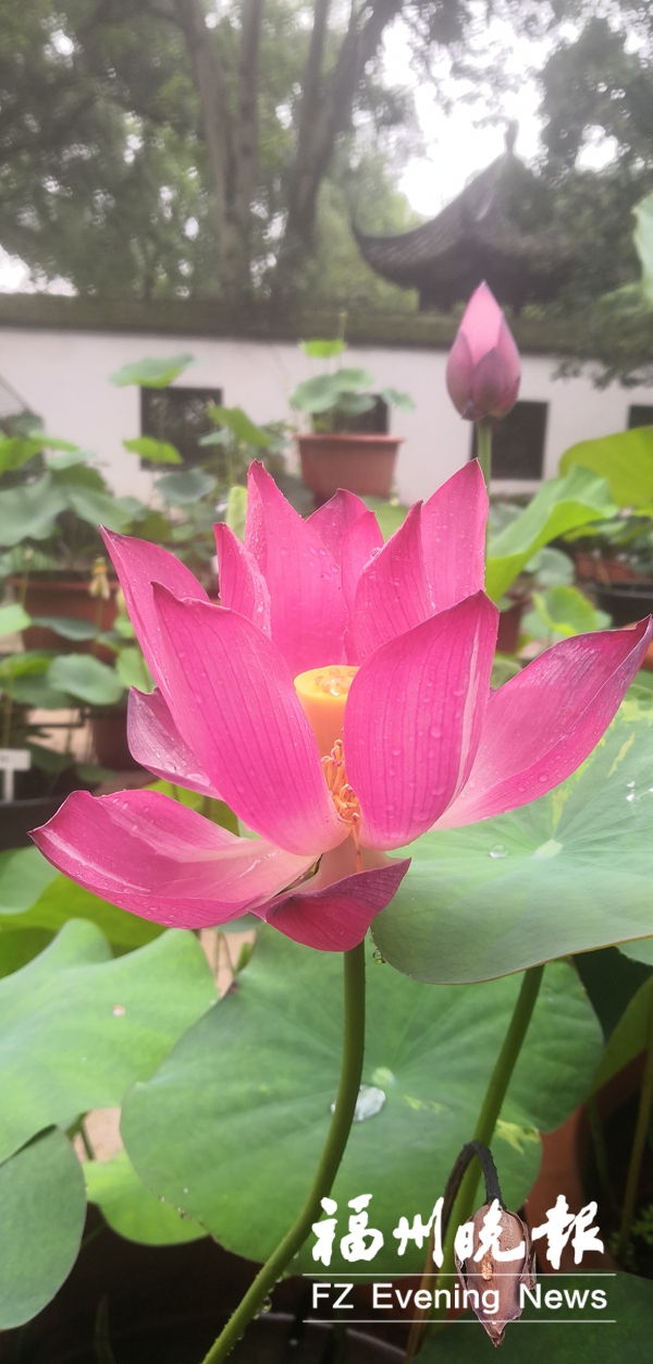 在林則徐讀書(shū)地——桂齋,143種荷花集中展示。而在西湖書(shū)院,游客在觀看廉政和黨史書(shū)畫(huà)作品展時(shí),也可以欣賞到點(diǎn)綴其間的荷花盆景。