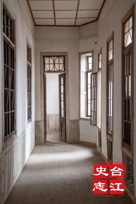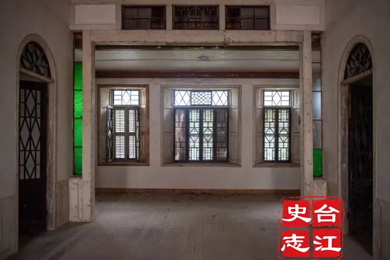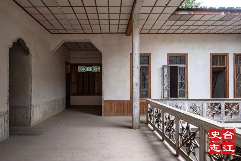 客廳地面用防水花磚鋪地,雖歷百年,仍可見當(dāng)年的氣派。二層為木板樓面,室內(nèi)設(shè)有古典式壁櫥角柱。