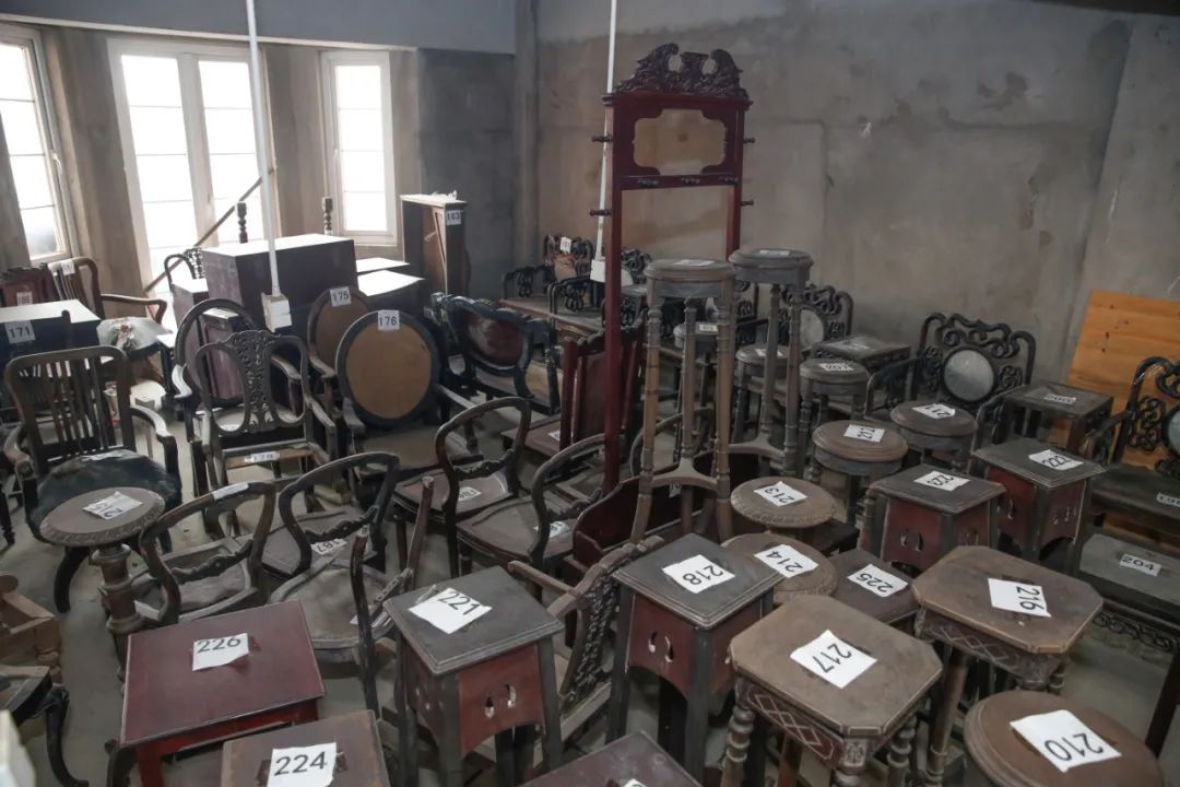 保管在閩侯倉庫的采峰別墅家具。(包華/攝)