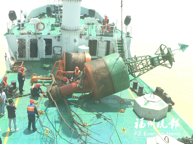 當日10時20分左右,記者從位于馬尾的福州航標處基地碼頭出發(fā),乘坐專業(yè)執(zhí)行航標起吊和應(yīng)急修復任務(wù)的“海巡1620”輪前往執(zhí)行任務(wù)水域。說到“新豐1號”航標,據(jù)了解,該航標在實際使用過程中出現(xiàn)了100米左右的距離移動,之所以會出現(xiàn)這種情況,一方面和風況、水流速度等自然因素有關(guān),另一方面和船舶行駛過程中的碰撞也有關(guān)系。“船舶都是按航標布設(shè)的航道行駛,發(fā)生大距離位移,會對水面安全行駛產(chǎn)生不利影響,這時候就需要我們及時復位。”福州航標處處長陳明忠說。