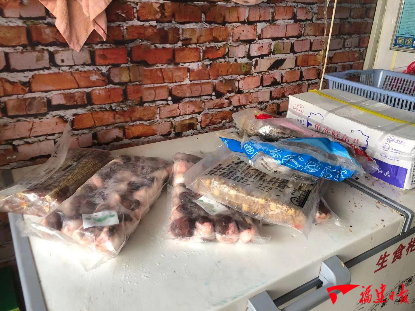 檢查中發(fā)現(xiàn),該店內(nèi)衛(wèi)生臟亂不堪,生熟食品混雜擺放;發(fā)現(xiàn)來源不明的調(diào)味料及原材料;消毒用品與食品擺放一起;冰柜里還發(fā)現(xiàn)生產(chǎn)日期標(biāo)注為2022年的早產(chǎn)小黃魚……目前已責(zé)令該店關(guān)停并立案調(diào)查。