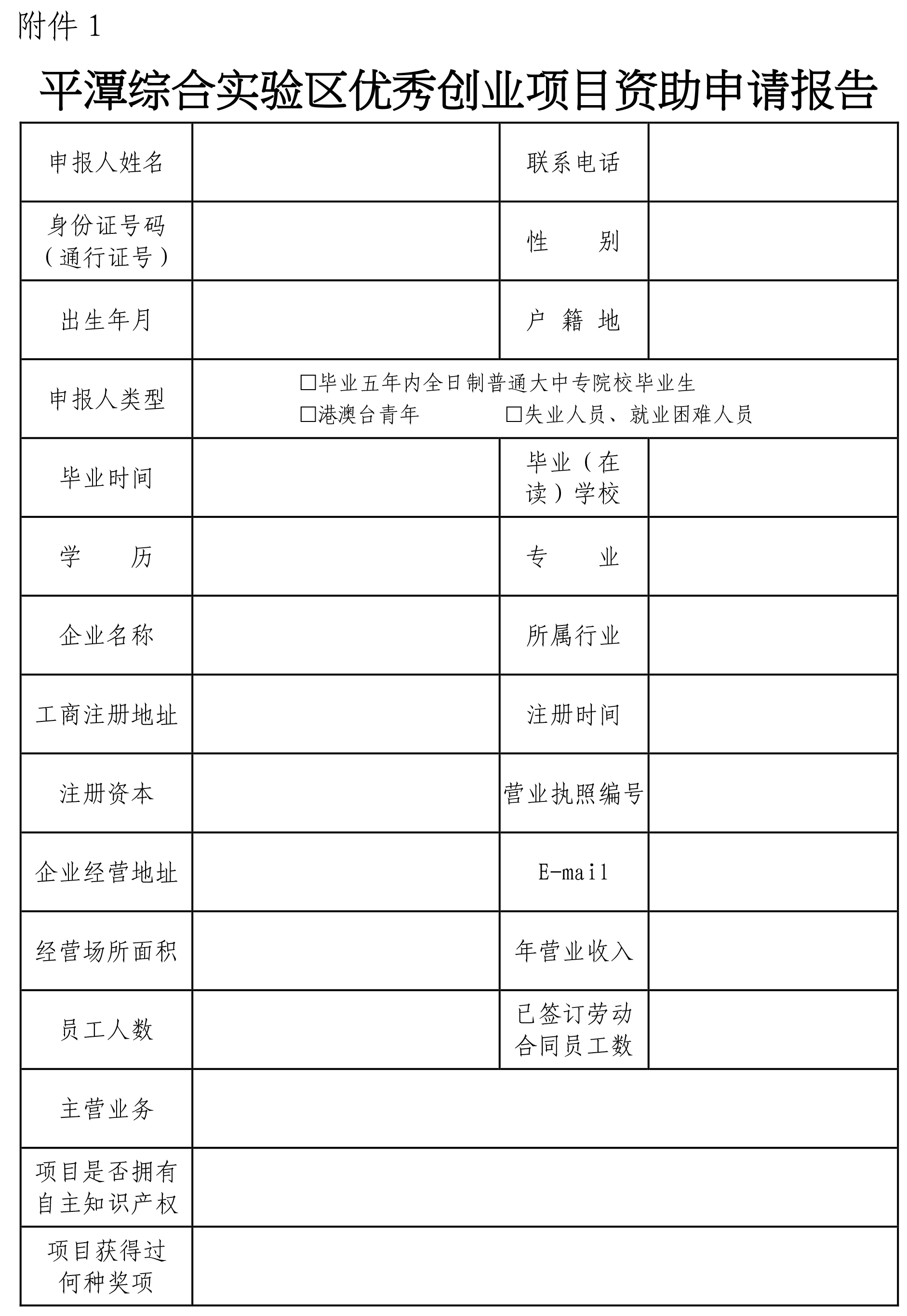 1.《平潭綜合實驗區(qū)優(yōu)秀創(chuàng)業(yè)項目資助申請報告》(附件1);