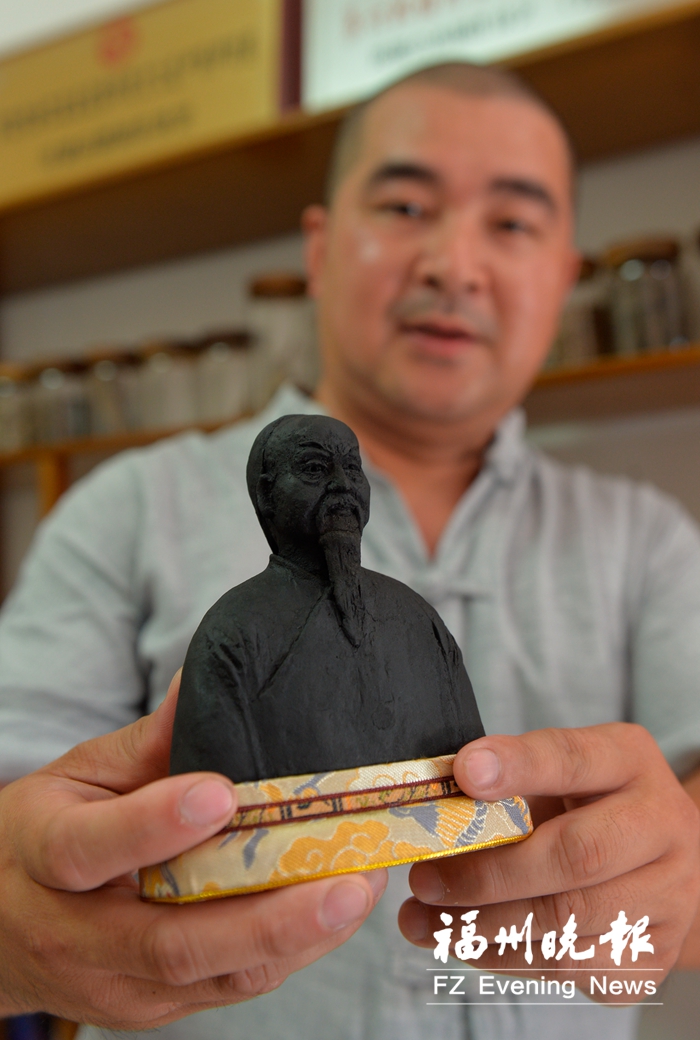 陳衛(wèi)平展示手工雕塑的冷凝合香林則徐胸像。