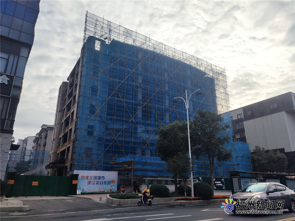 “這次是正式開(kāi)拆了。你看,我們都啟動(dòng)拆除程序了,腳手架正在搭設(shè),拆除設(shè)備也已經(jīng)進(jìn)場(chǎng)。這次拆除,主要是拆除原來(lái)福州商貿(mào)大廈已經(jīng)建成的地上部分。大樓的地下部分,設(shè)計(jì)年限是100年,加上緊挨地鐵一號(hào)線,因此這部分不會(huì)進(jìn)行重建。”13日上午,在南街福州商貿(mào)大廈工地,施工單位工作人員指著樓體上罩著的藍(lán)色防護(hù)網(wǎng)這樣告訴記者。