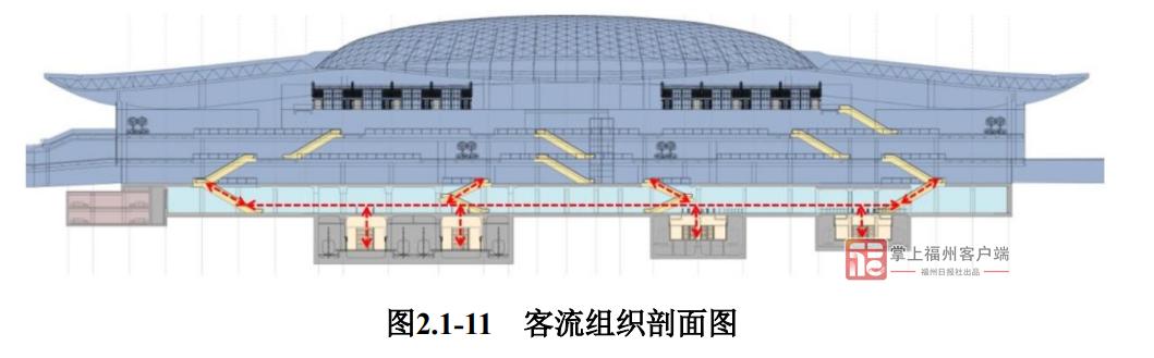 c.國(guó)鐵與城市軌道交通換乘:國(guó)鐵及地鐵乘客通過(guò)負(fù)一層中軸換乘大廳實(shí)現(xiàn)國(guó)鐵與地鐵換乘。